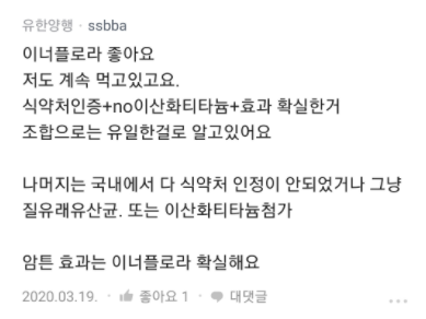저는 아래와 같이 후기가 나쁘지 않은 것 같아 뉴오리진 이너플로라 질유산균으로 선택했습니다.