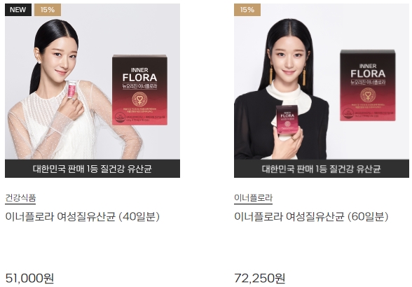뉴오리진 이너플로라 질유산균은 배우 서예지 씨가 모델로 활동하고 있습니다. 건강하고 여성스러운 이미지와 잘 매칭되는 모델인것 같습니다.