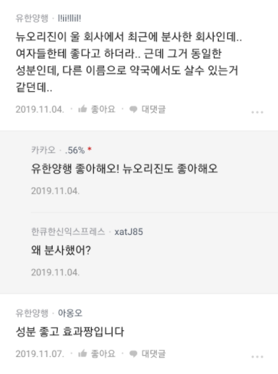 뉴오리진은 유한양행 화장품 사업부가 분사된 회사입니다.
